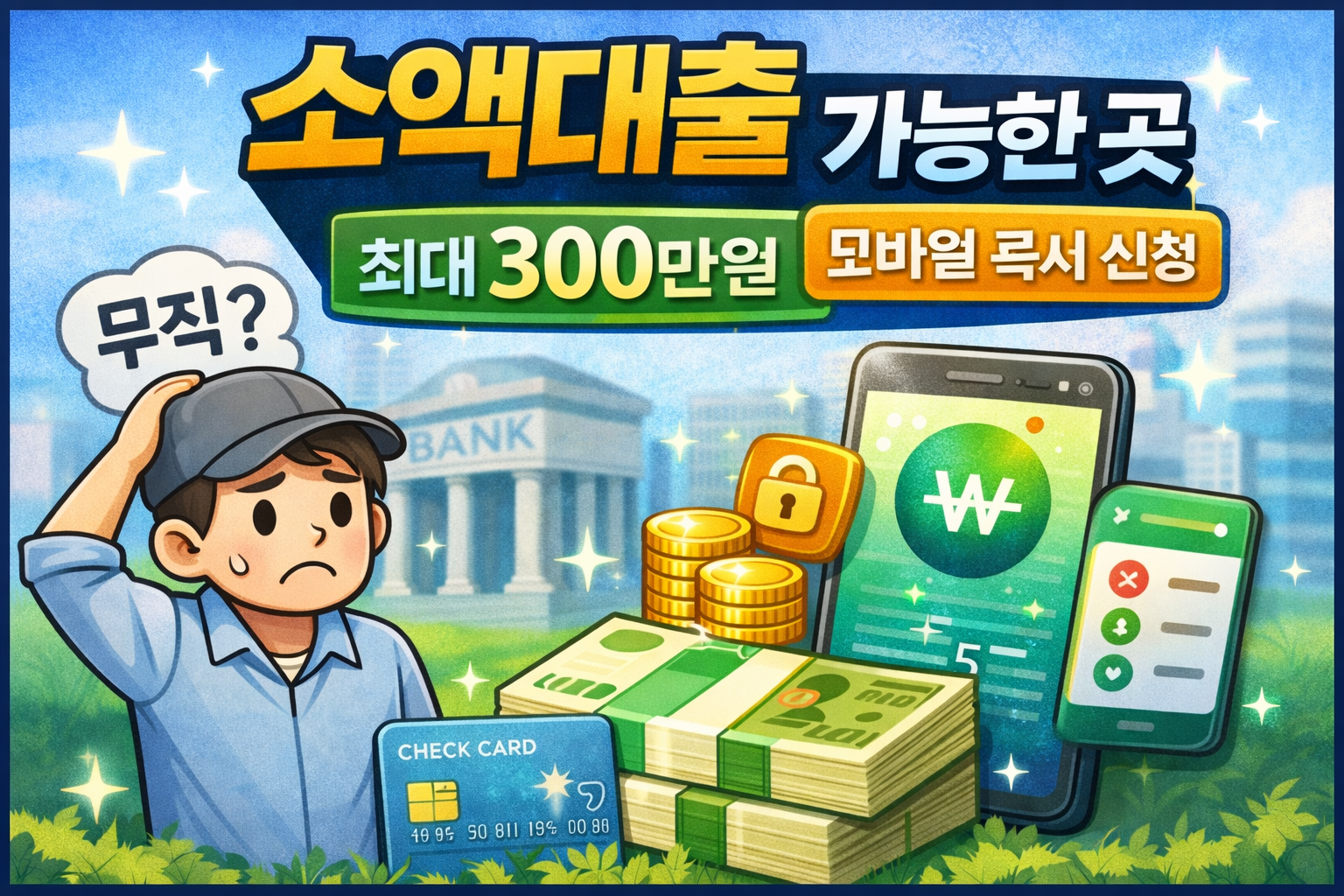 갑자기 돈이 필요할 때 있죠.큰 금액은 아니고, 딱 50만 원~300만 원 정도만 있으면 해결되는 상황…근데 막상 대출 알아보면조건이 까다롭거나 승인까지 오래 걸려서“이거 당장 필요한데 어떡하지…” 싶을 때가 많습니다.그래서 오늘은✔ 승인 빠른 소액대출✔ 무직자도 가능한 상품✔ 1금융권 중심 안전한 대출위주로 정리해봤어요.급하게 알아보는 분들은이 글만 보고 바로 비교해도 될 정도로 정리해드립니다.⸻소액대출이란?보통 300만 원 이하의 금액을간편 심사로 빌릴 수 있는 대출을 말합니다.특징은 이렇습니다. • 소득 증빙 없이 가능 • 모바일 신청 가능 • 승인 속도 빠름 • 대부분 1금융권 상품그래서✔ 대학생✔ 취준생✔ 주부✔ 무직자도 많이 이용하는 편입니다.⸻소액대출 가능한 대표 상품 TOP41. 카카오뱅크..