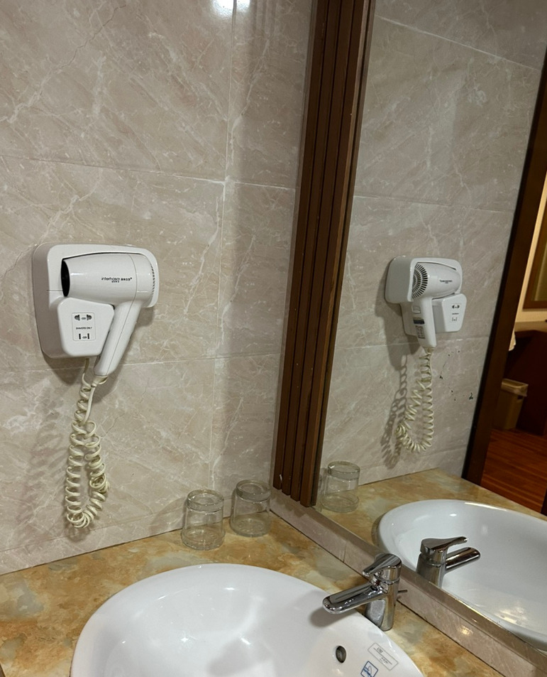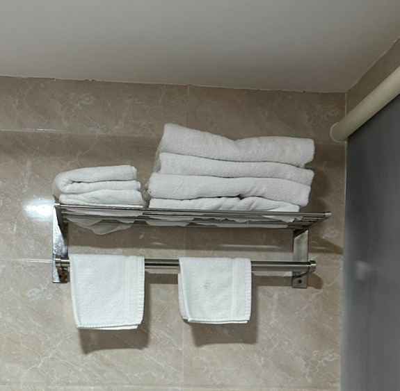 ✔️ 모텔 수준의 어메니티와 드라이기, 넉넉한 수건 제공